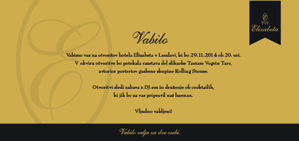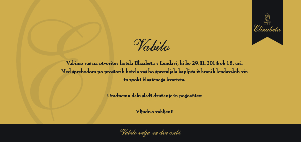 vljudno vas vabimo, da sem pridružite na otvoritvi HOTELA ELIZABETA v LENDAVI v PREKMURJU, ki lendavskemu turizmu z novim vodstvom prinaša novo kvaliteto.