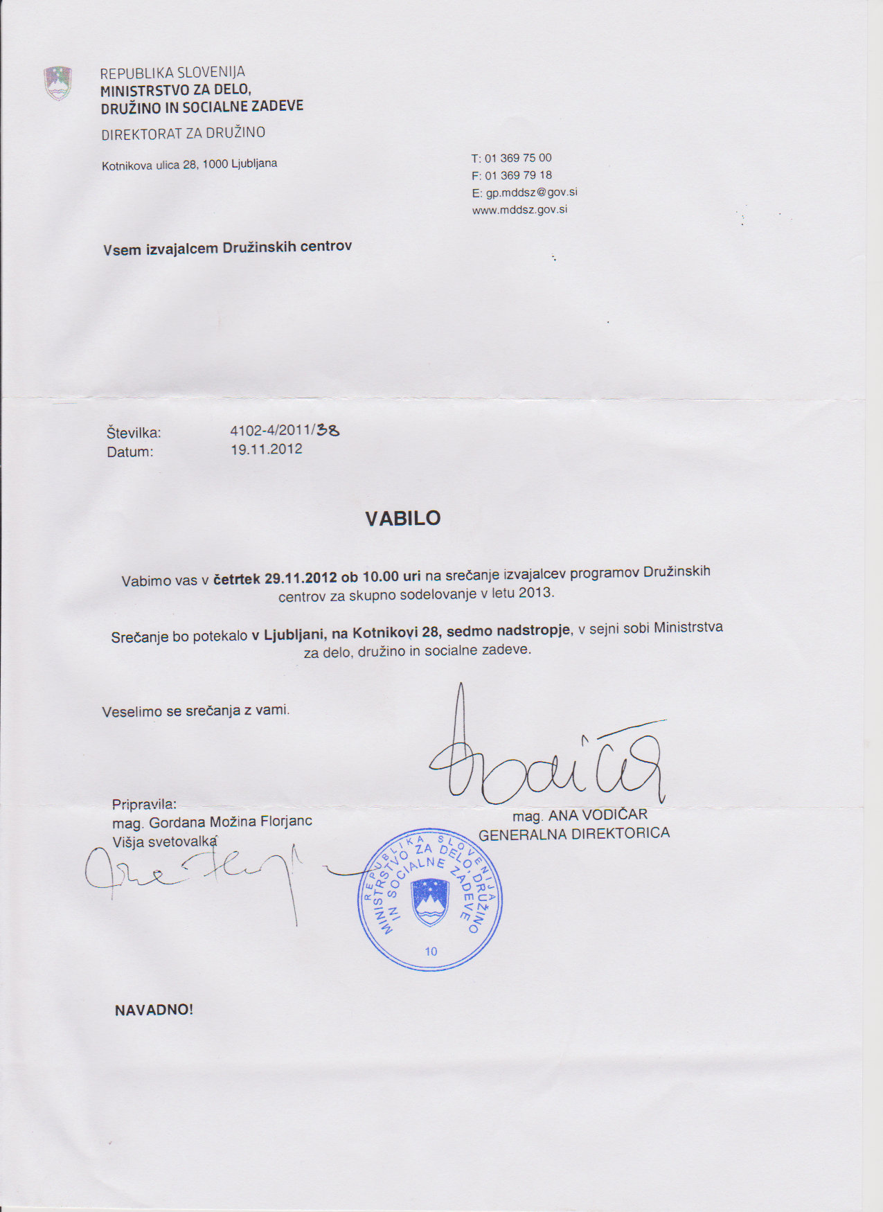 Radi bi vas opozorili, da je Zavod RS za zaposlovanje dne: 23.11.2012, na svojih spletnih straneh objavil Javno povabilo za Sofinanciranje stroškov zaposlitve brezposelnih v programih javnih del pri neprofitnih delodajalcih za leto 2013.