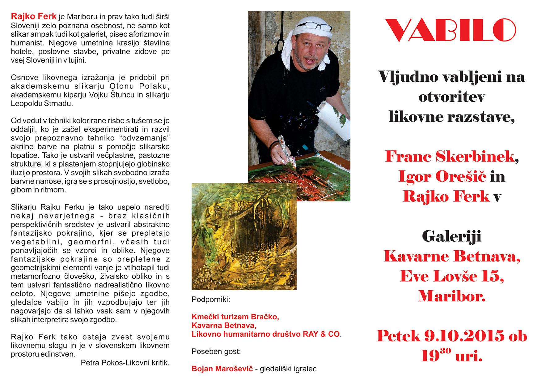 Razstavo so podprli: Kmečki turizem Bračko, Kavarna Betnava in Likovno humanitarno društvo Ray&Co.