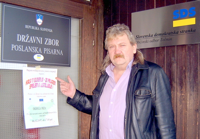Na fotografiji Marjan Pintarič pred vhodom v prostore razvojnega centra kjer je potekala javna tribuna prejšni