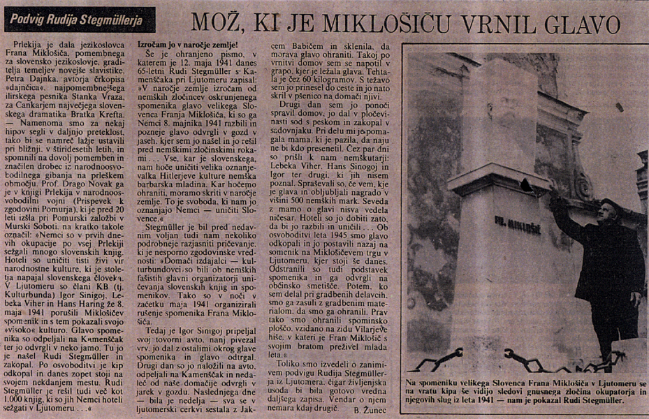 Rudi Stegmüller ( 1920 - 1991 ) rešil več 1000 slovenskih knjig in spomenik dr. Franca Miklošiča.