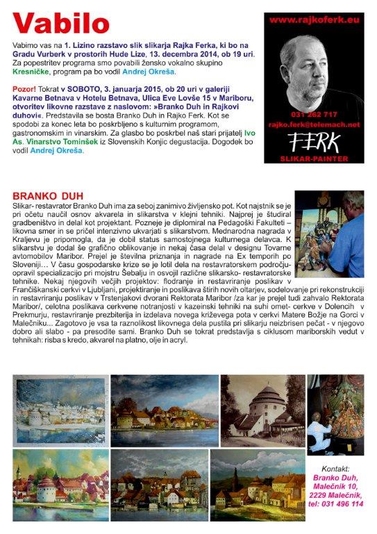 otvoritev razstave likovnih del priznanih slikarjev BRANKA DUHA in RAJKA FERKA.