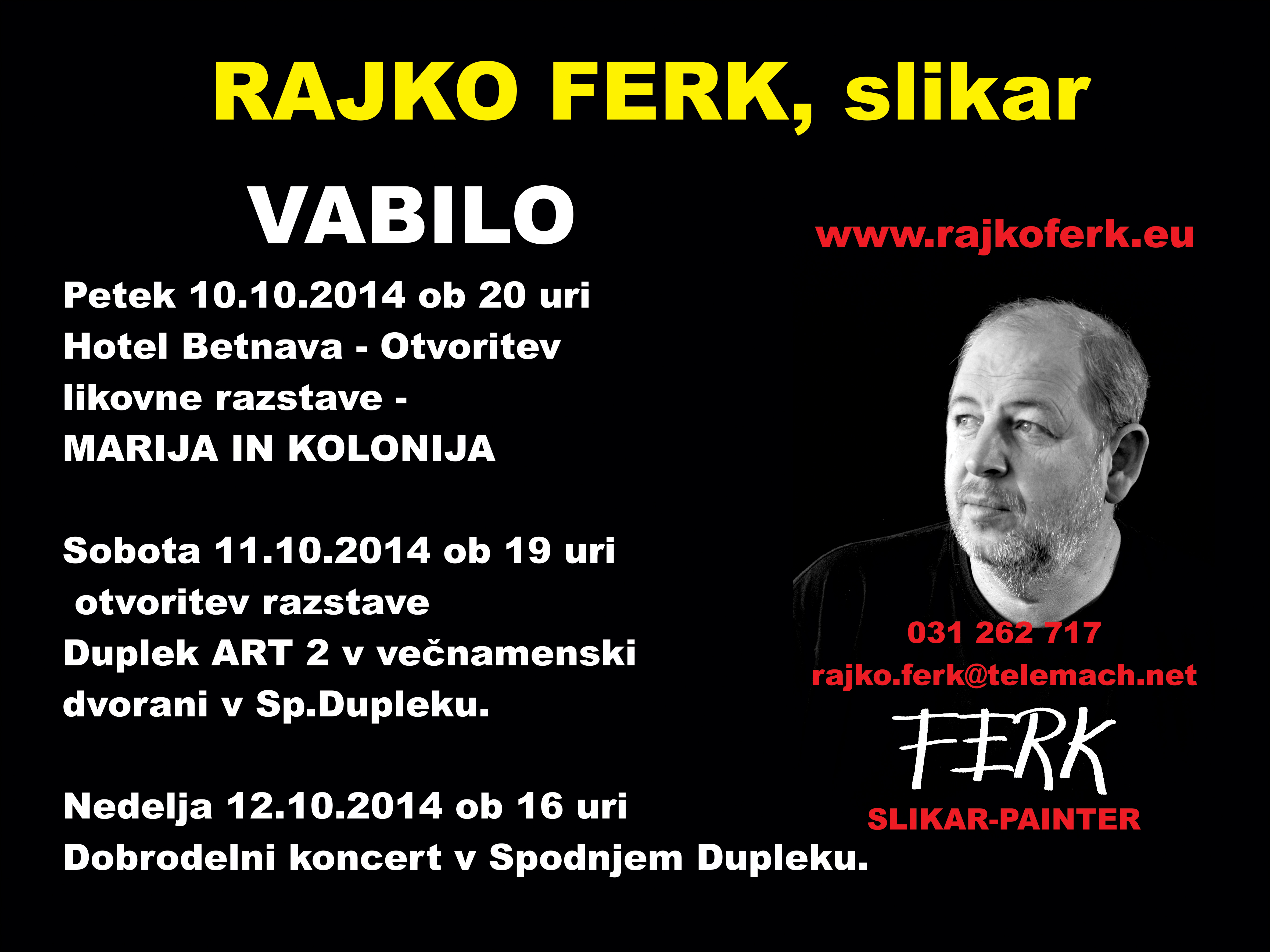 Gre za dela iz mednarodne razstave likovnih del številnih umetnikov, ki so ustvarjali na »1. Mednarodni likovni koloniji Duplek Art 1« septembra letos v organizaciji Rajka Ferka in TD Duplek. Ob tem bo svoja dela prvič razstavila tudi umetnica Marija Šelih.