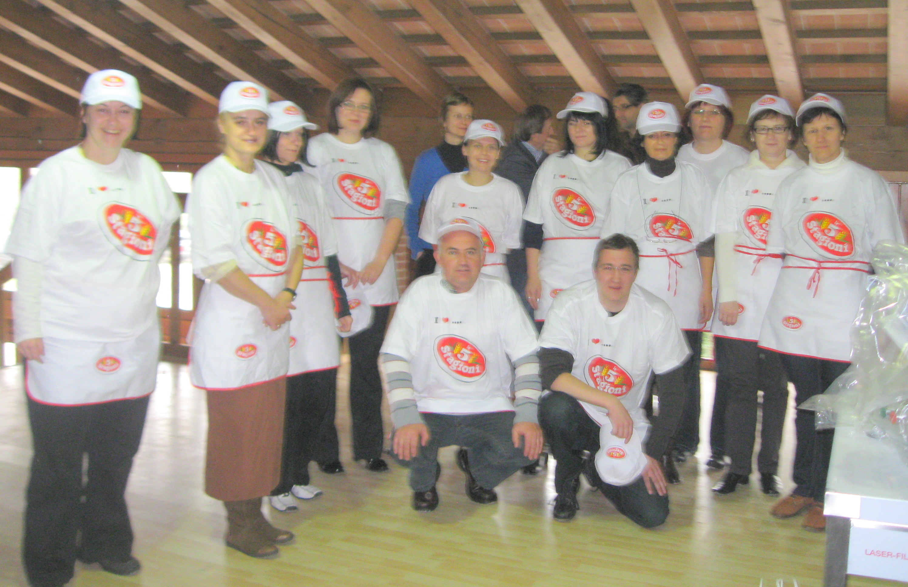 Na fotografiji prekmurske udeleženke-tečajnice, brez moške prleške in prekmurske roke pa seveda tudi tukaj ni šlo.