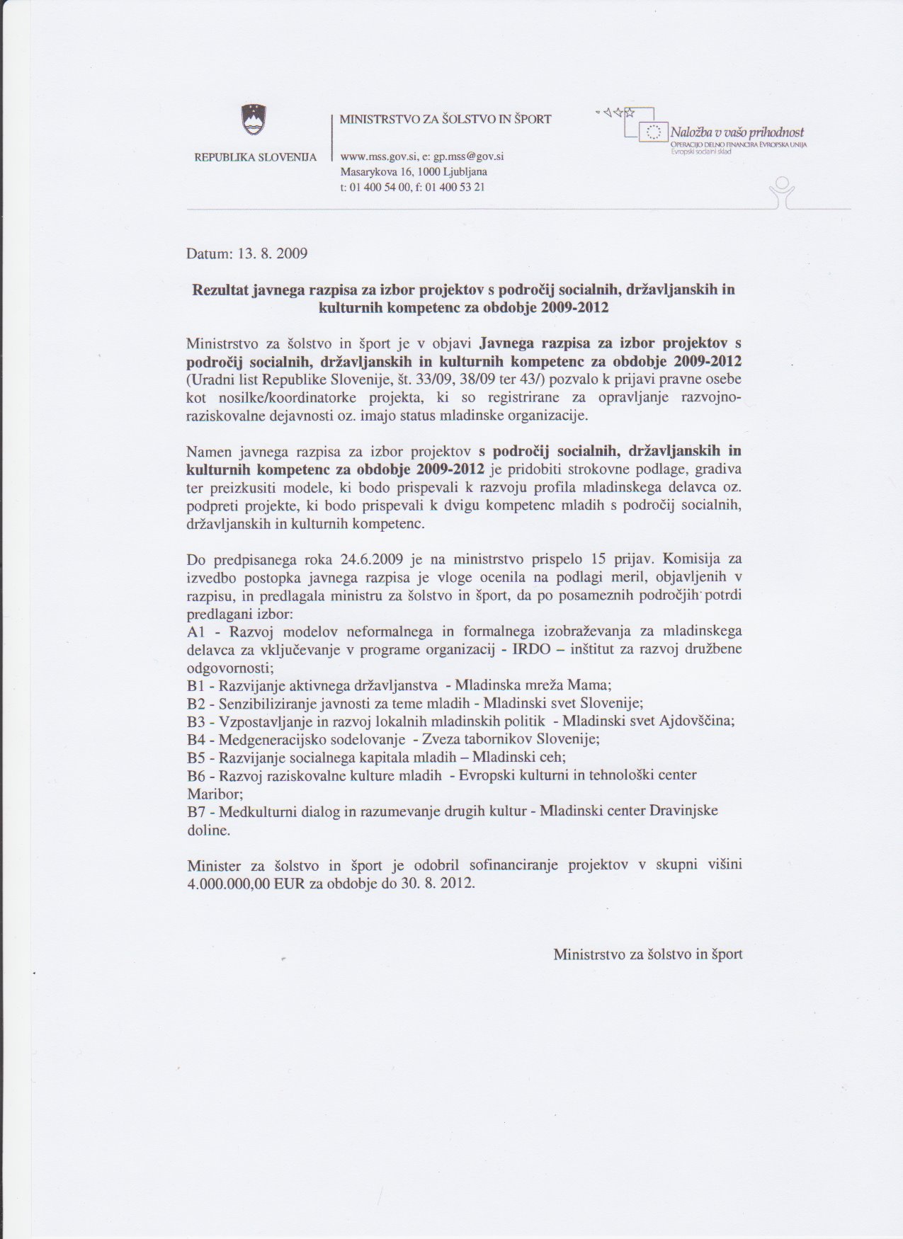 Slovenije, ki skladno s pooblastilom Sveta Vlade RS za mladino, izvaja