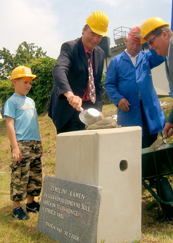 Polaganje temeljnega kamna za novo šolo, vrtec in telovadnico v Stročji vas. Nasvidenje ob otvoritvi. Uresničevanje obljube ljutomerskega župana Franca Jurše iz leta 2006 ter neprecenljiva pomoč sedanje Janševe vlade.