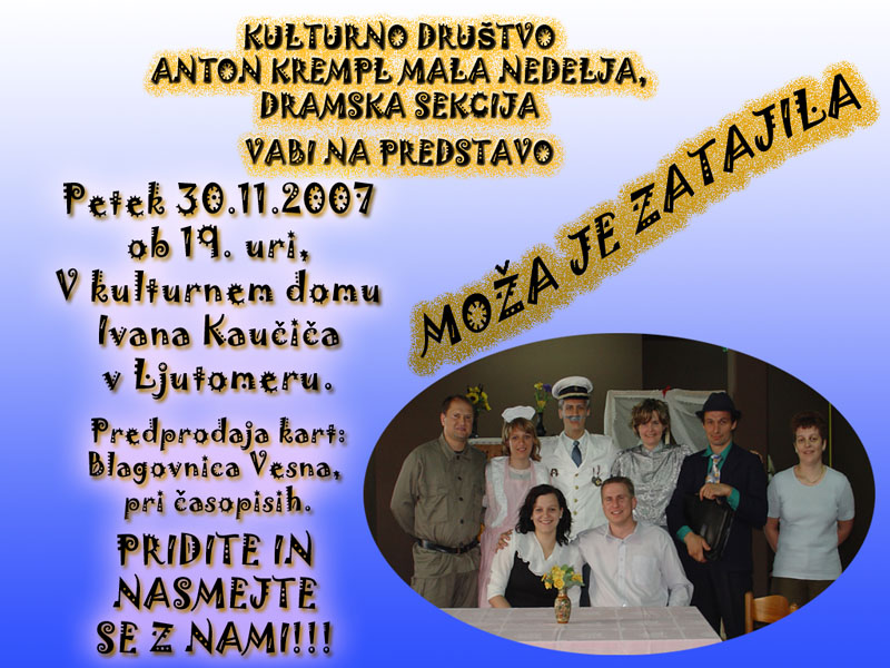 Predstava bo v petek, 30.11.2007 ob 19. uri, v Kulturnem domu Ivana