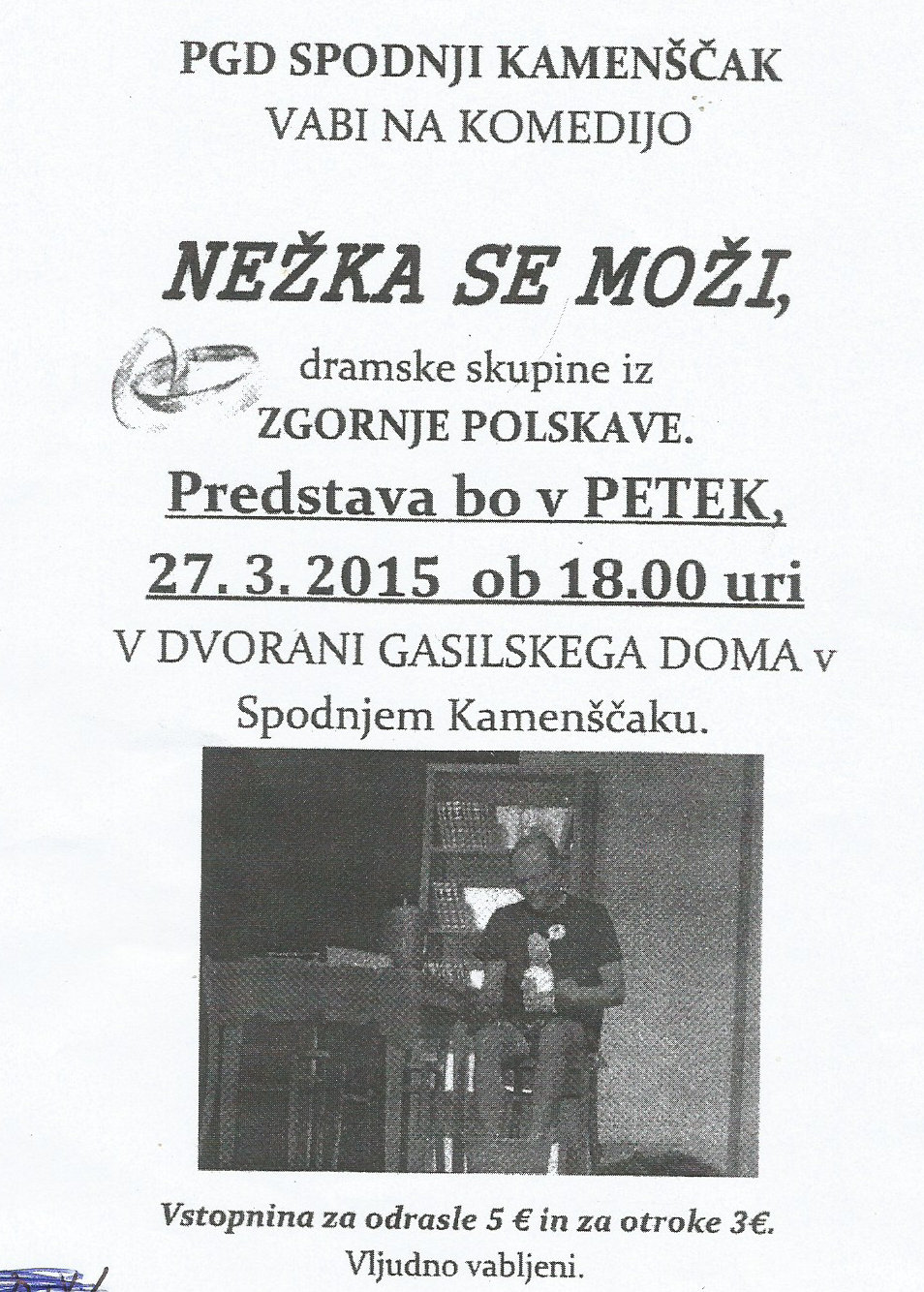 27. 03. 2015: ob 18. uri, gasilski dom – Sp. Kamenščak, NEŽKA