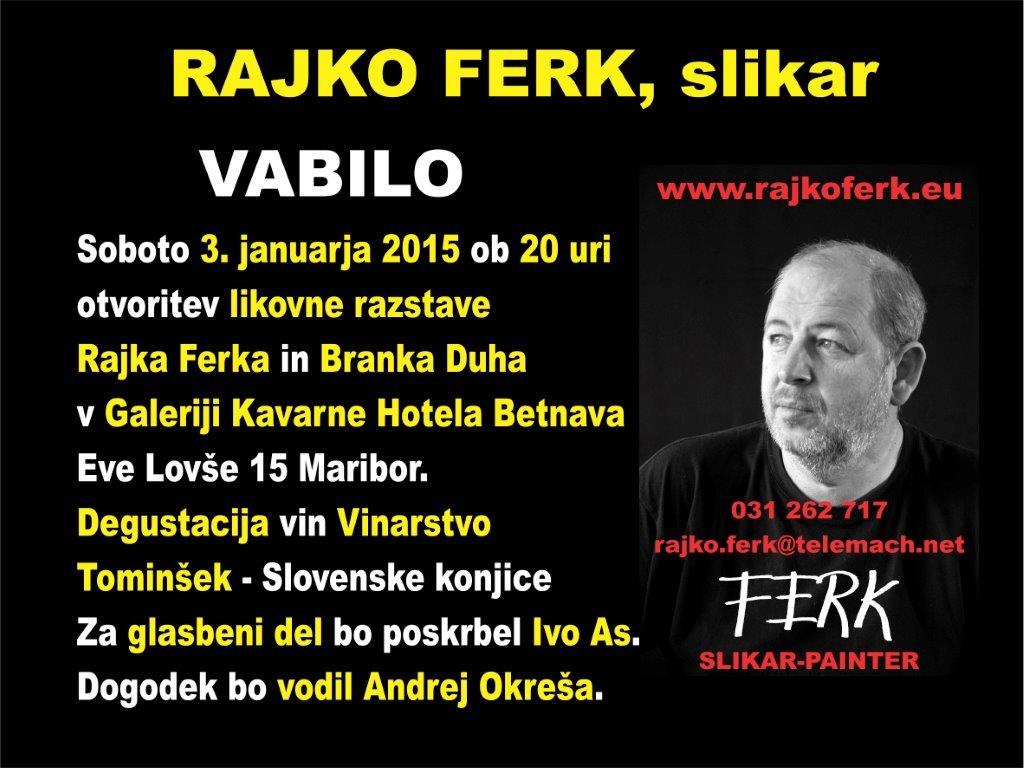 v soboto, 3. januarja 2015, ob 20.00 bo v Mariboru, v galeriji Kavarne Hotela Betnava, Ulica Eve Lovše 15,